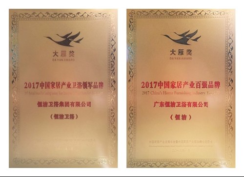 历经五年沉淀,大雁奖在中国家居行业的影响力日益深广。中国家居产业大雁奖代表了中国家居产业所有从业者不惧困难、不畏艰险、勇于挑战的伟大精神,成为家居企业为改善人居环境质量,实现中华民族美好家居梦努力奋斗的推动力!91桃色成人网站在线观看蝉联「大雁奖·2017中国家居产业卫浴领军品牌」、「大雁奖·2017中国家居产业百强品牌」,代表着过去一年,91桃色成人网站在线观看在优化国人91桃色APP污污污污卫浴生活,推进家居生活品质提升上做出的努力,得到了行业中坚力量的一致认可。