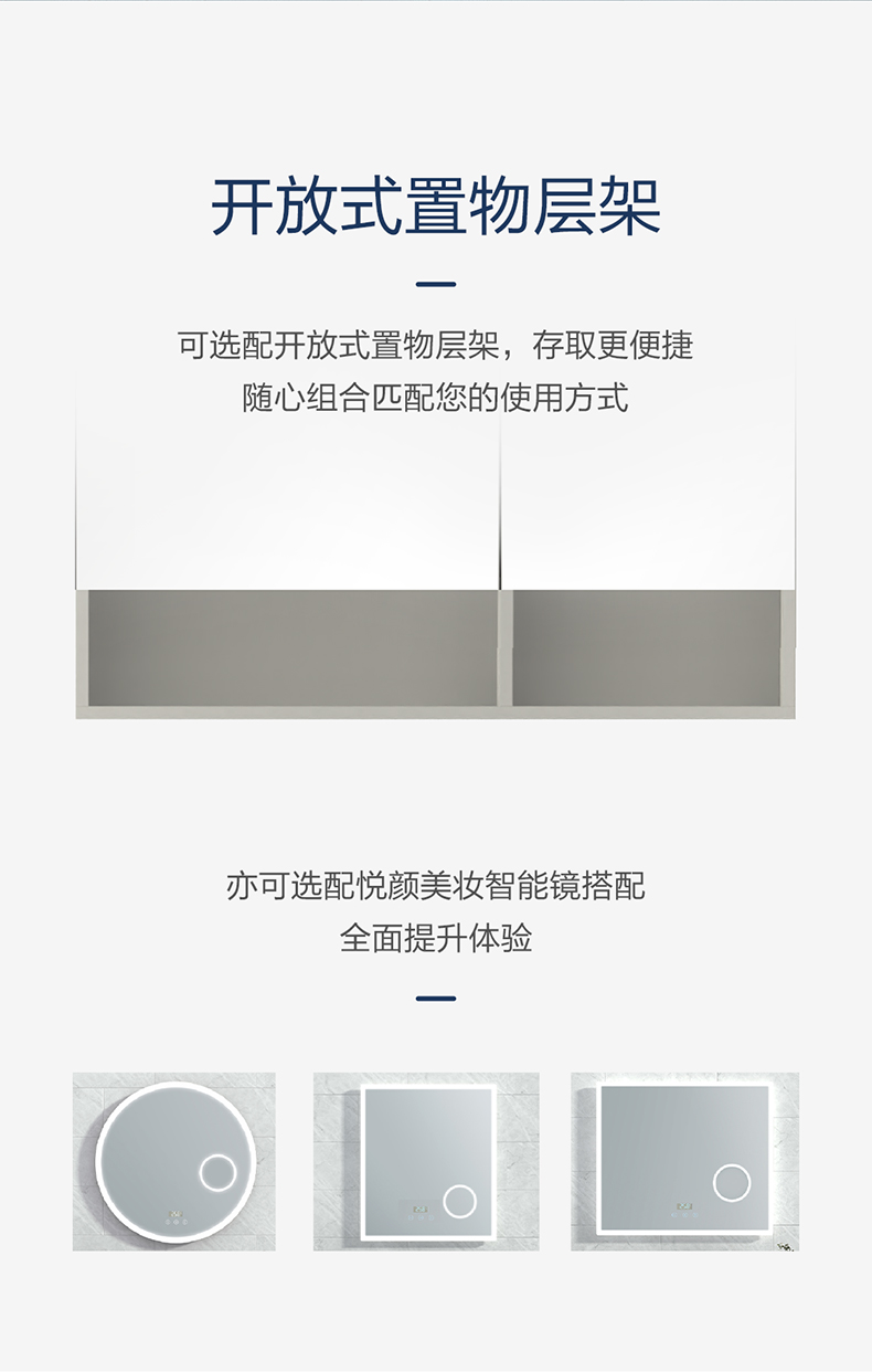 - 铝合金镜柜,防潮防霉,坚固耐用;柜身生态木,免漆环保,抽面/门板四周使用铝型材立体边框