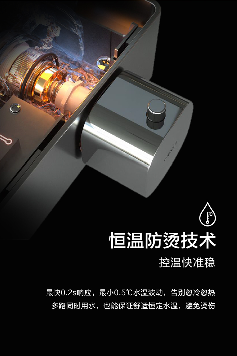 • 恒温防烫技术,0.2s快速响应,±0.5℃精准控温