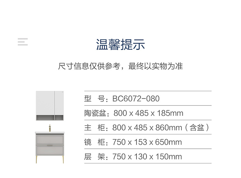 主柜尺寸:800x485x860mm(含盆)