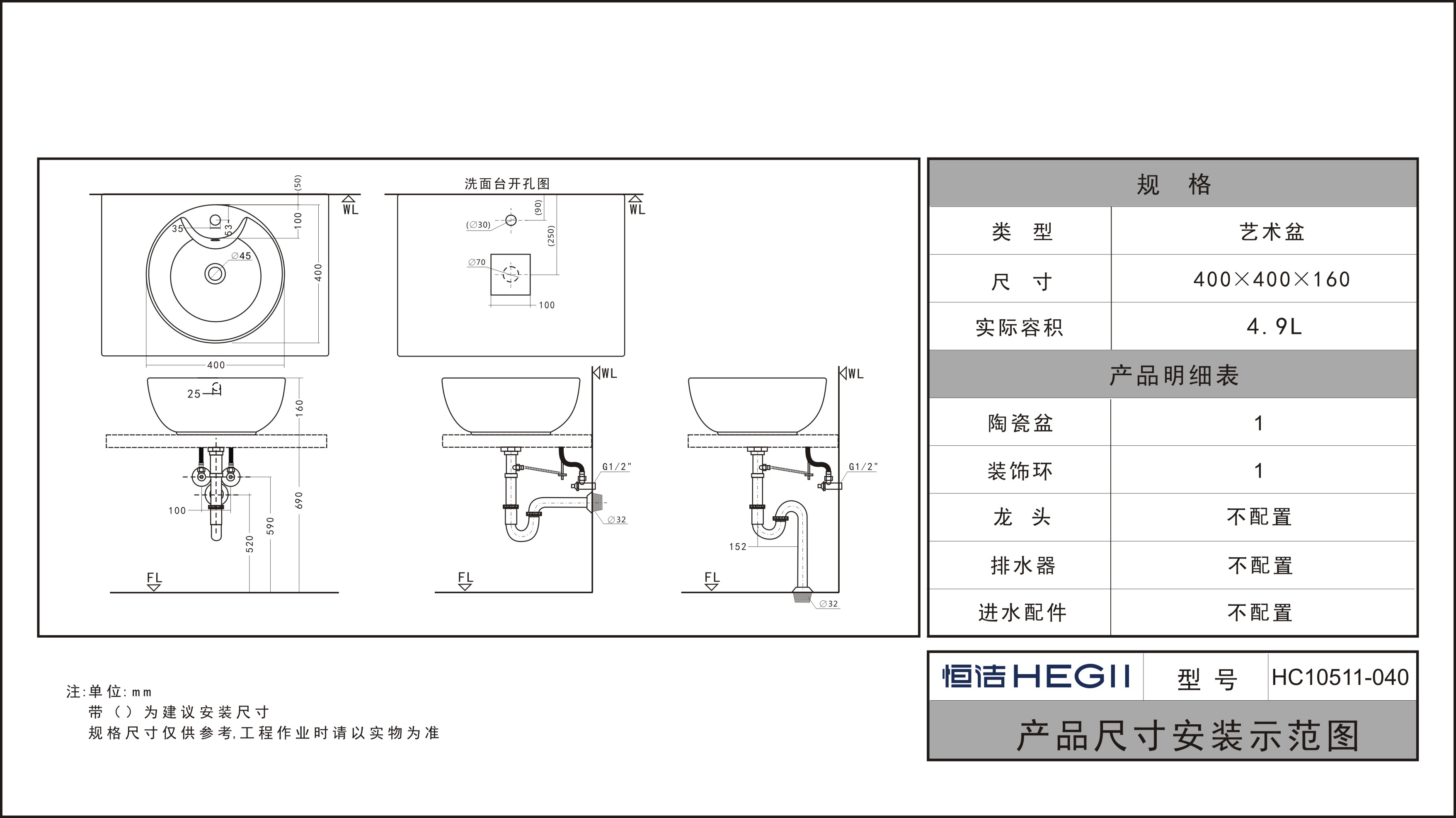 尺寸:400x400x160mm