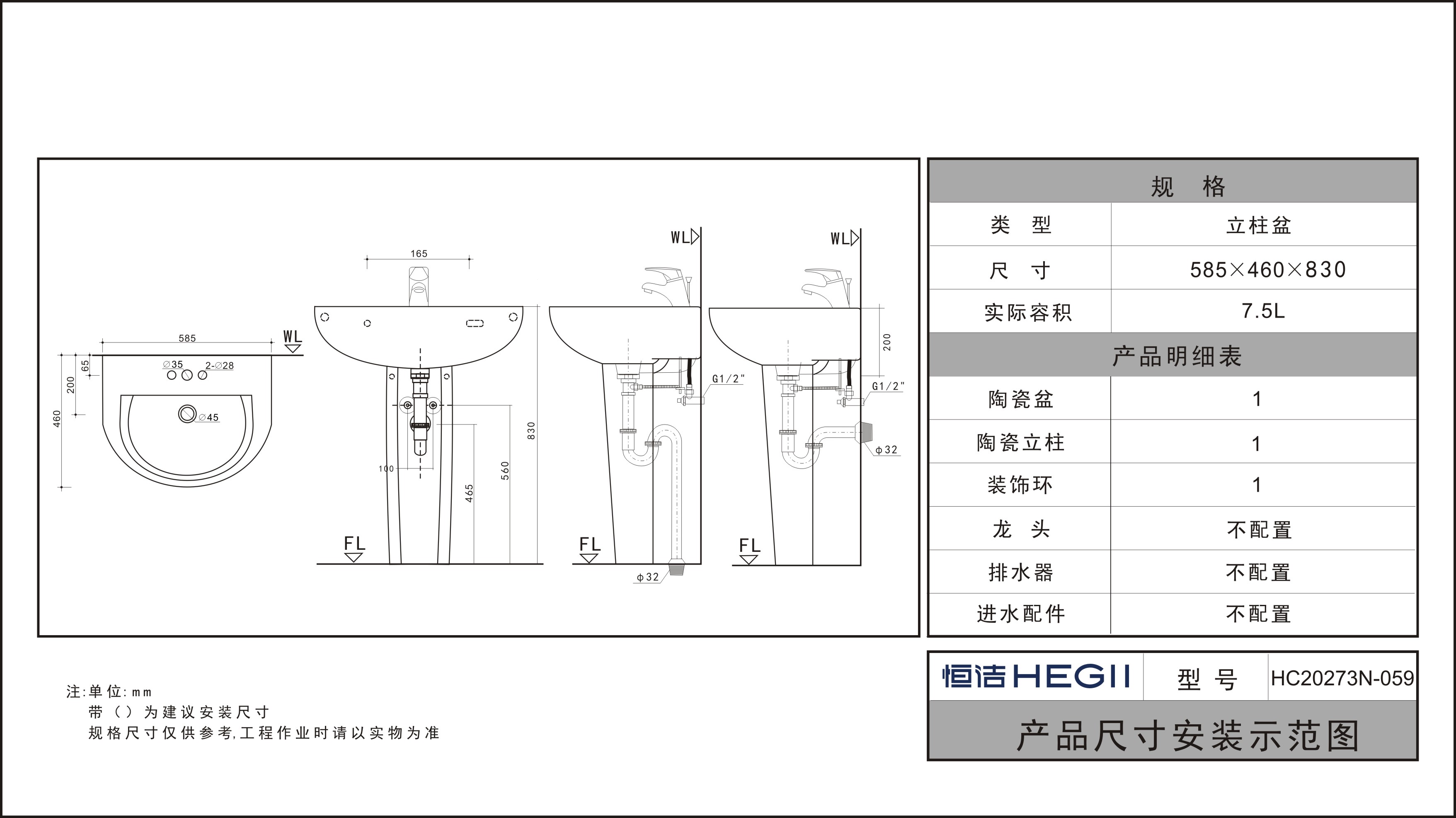 类型:立柱盆